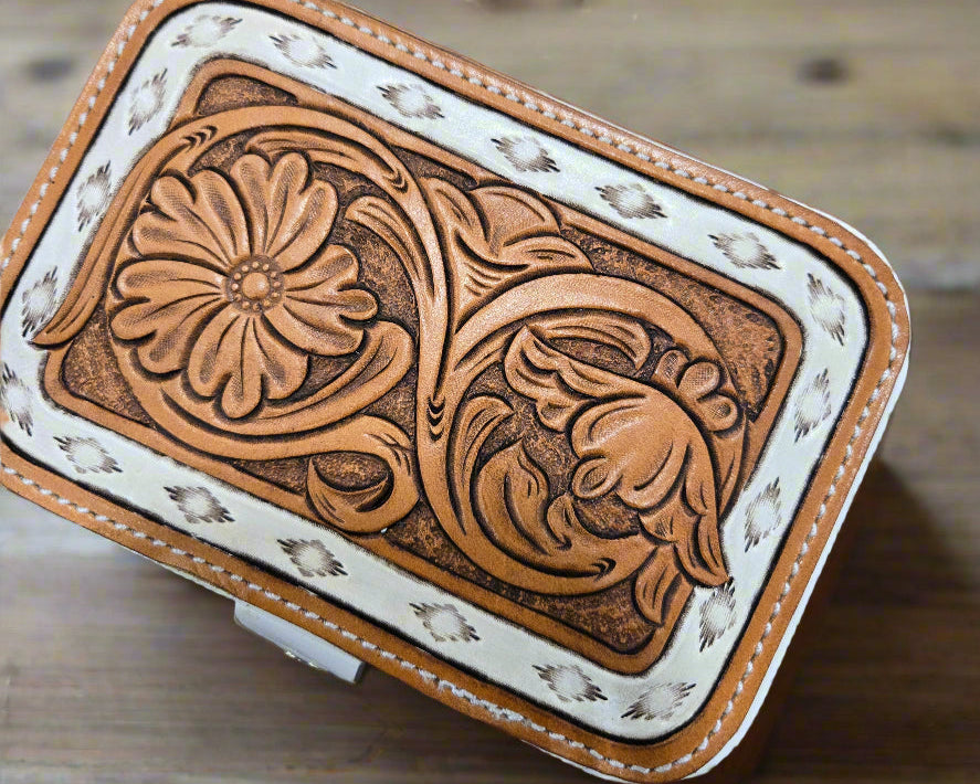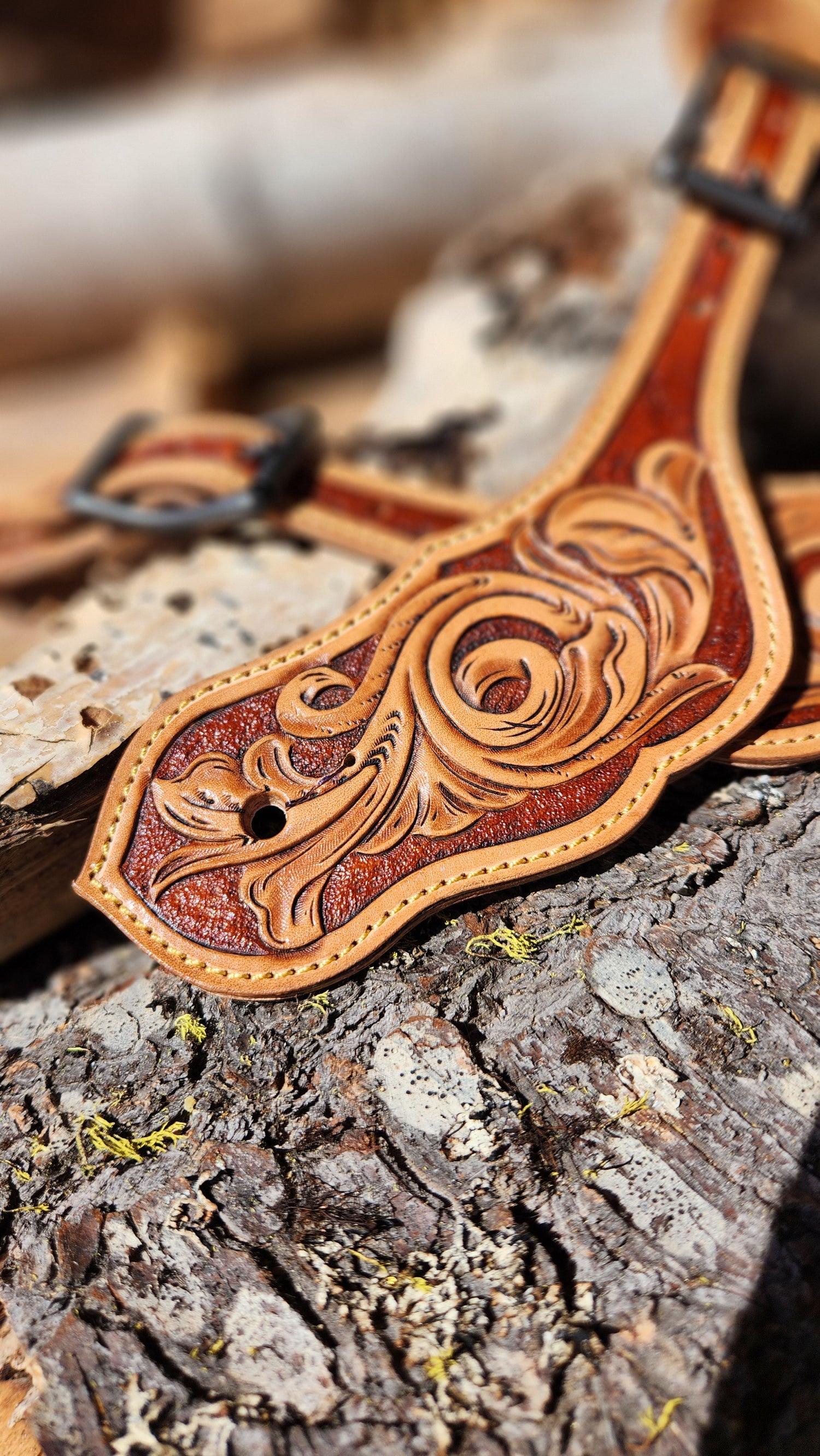 Achieve the Perfect Balance of Functionality and Fashion with Our Hand-Tooled Spur Straps.