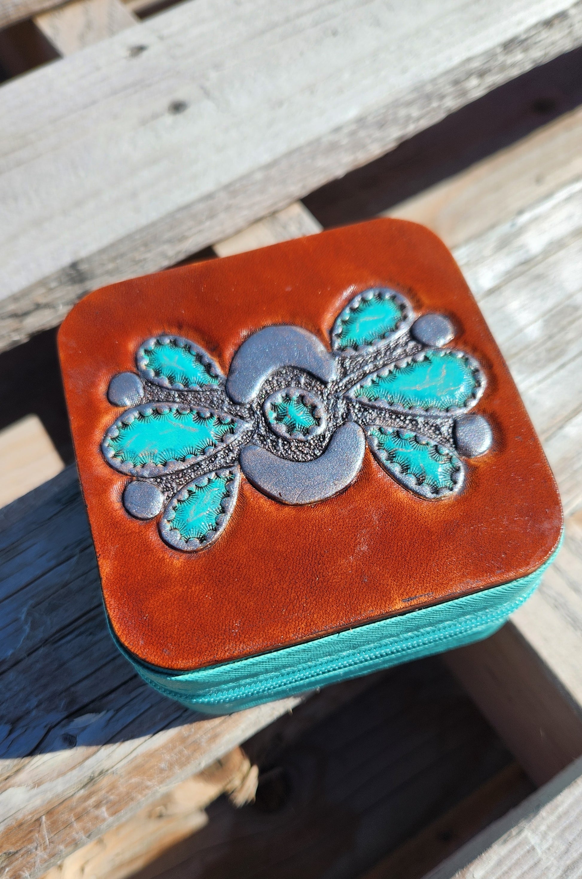 Turquoise Concho Travel Size Jewelry Case